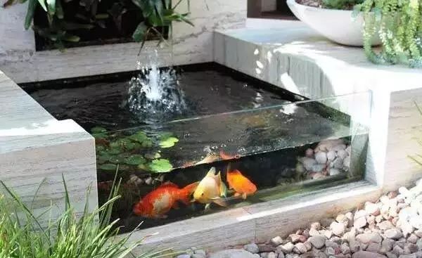 较为现代的小池子,种几棵浮萍,样几条金鱼,在利用小喷泉把整个池水灵动了起来。