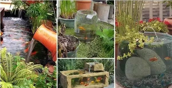 陶罐流水,青苔满地,绿植点缀,鱼儿欢闹,狭小空间,也能造出一个迷你水族馆。